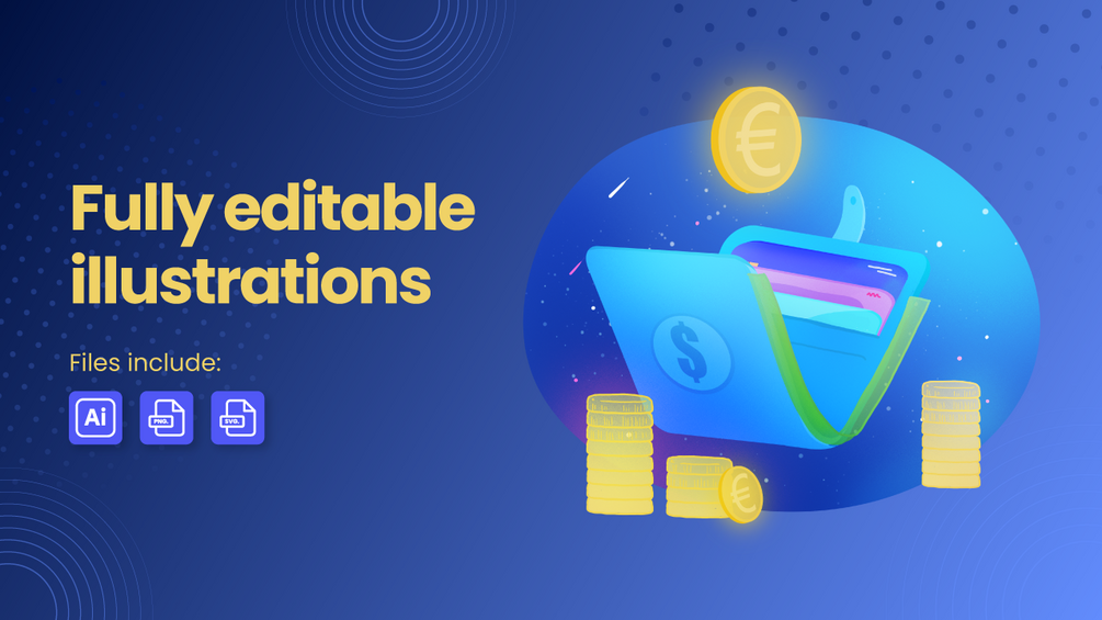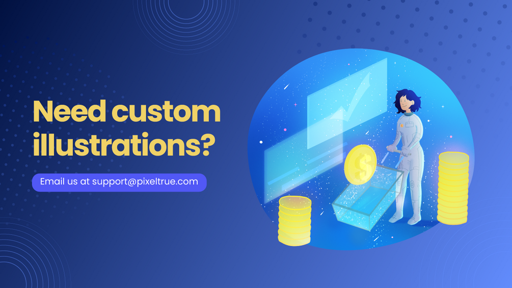 Don’t just stick with numbers and data– Give life to your content by using our Finance & Tech Banking Illustrations.