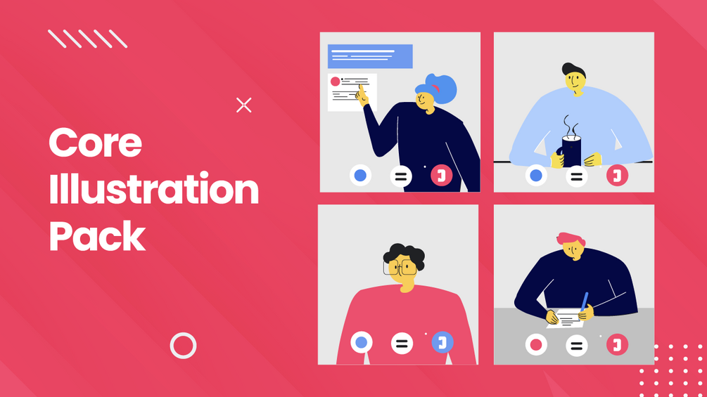 Our Core Illustration Pack offers a colored and black and white version, styles, and themes, giving you the creative freedom to bring your ideas to life. Whether you're aiming for a minimalist aesthetic or something more whimsical, we've got you covered.