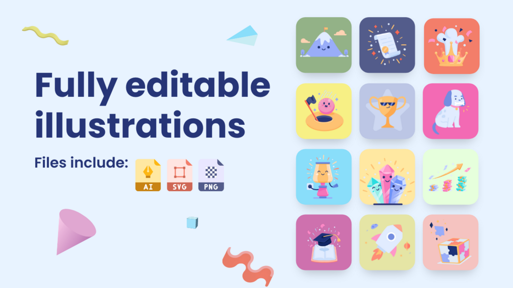 Our Success illustration pack boasts exciting scenes that you can easily plug in to complement your copy. Just grab what you want and make your own scene in no time!