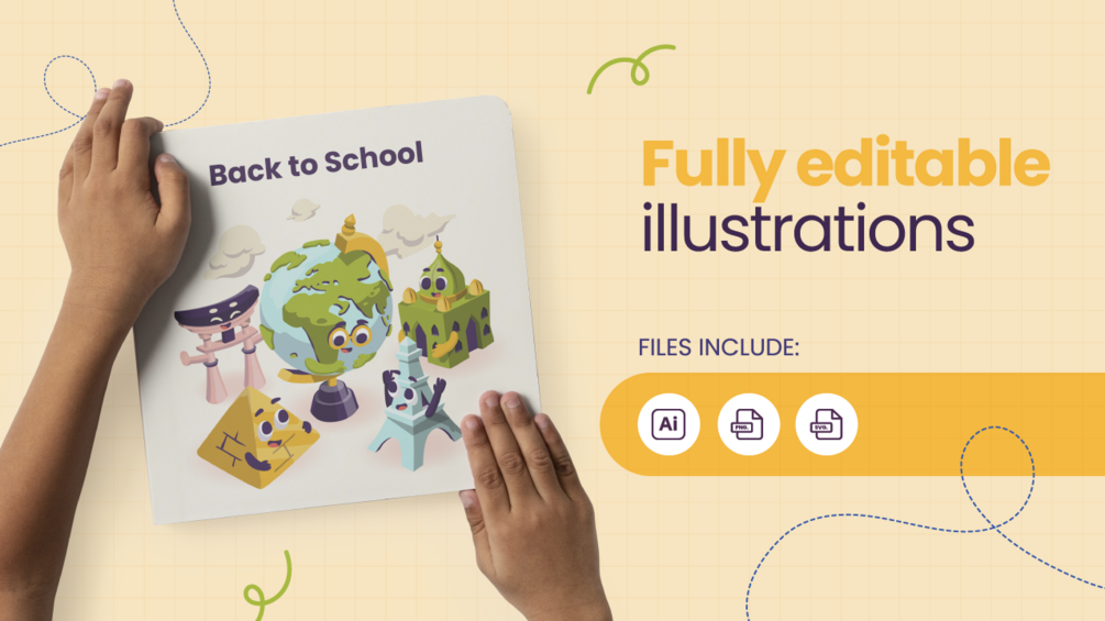 This pack is specially designed to bring joy and creativity to teachers, homeschool moms, and anyone involved in designing school materials for kids. The Back-to-School Illustration Pack features a diverse cast of adorable school characters that will ignite the imagination and engagement of learners.