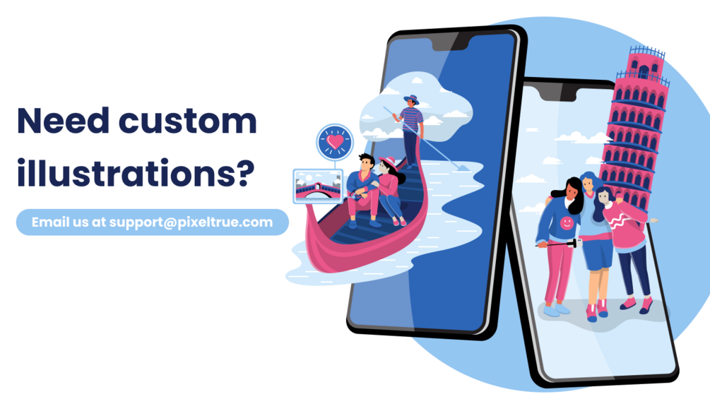 Our Travel Illustration Pack boasts exciting scenes for SEO, marketing, product release, newsletter, etc. that you can easily plug in to complement your copy. Just grab what you want and make your own scene in no time!