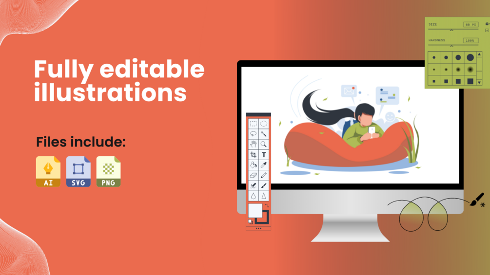 Our Fresh Illustration pack boasts exciting scenes for that you can easily plug in to complement your copy. Just grab what you want and make your own scene in no time!